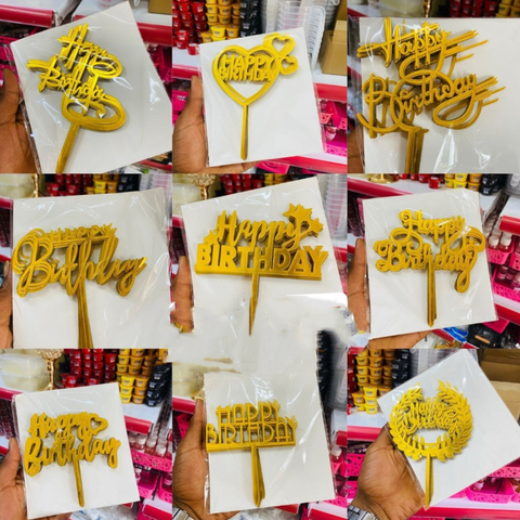Atacado 10 unidades/pacote Cake Acessórios Decorações Suprimentos Cake Topper Feliz Aniversário Ouro Acrílico Cupcake Toppers